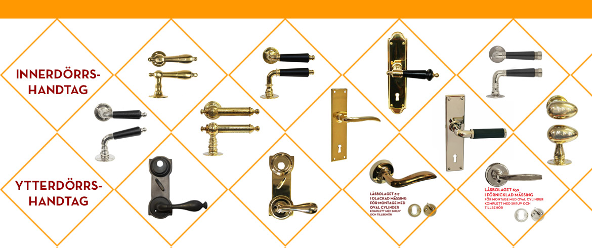 Vi lagerhåller långt över 100 olika dörrtrycken för såväl innerdörr som ytterdörr.